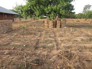 Here are some of the kids in their compound. They were great "little helpers" on the day that we were measuring out the barn foundation.